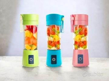 FRULLATORE PORTATILE RICARICABILE USB mini centrifuga piccola, portatile e multifunzionale. Pu essere utilizzata come una comune bottiglia o come mixer di succhi. Una bottiglia di succo di frutta per essere sempre in forma. Prepara bevande come: frullati di banana / fragola / vaniglia / cioccolato / mango-yogurt. Succhi freschi di arancia / anguria / mango / mela / pera / papaia. E molte altre bevande come Cocktails / Ice tea / Cold Coffee / Protein Shake / Buttermilk batteria ricaricabile 2000mah all'interno. ideale per casa, viaggi, ufficio, sport all'aria aperta e gite giornaliere. il design portatile è facile da trasportare e riporre Gadget pratico, elegante e robusto con incredibile efficienza. fatto di materiali sicuro, innocuo, non tossico, inodore ed ecologico. facile da smontare e sciacquare / lavare Specifiche: Colore: Verde, Viola, Rosa, Celeste, Rosso Dimensioni dell'articolo: 75X 75X 243mm (L x P x A). Peso dell'articolo:560g. Volume bicchiere:380 ml. Tensione nominale: CC 5 V + 0,25 V. lavabile in lavastoviglie Motore: 3,7V Velocità del motore: 22000 Giri al minuto a vuoto, 15000 a pieno Batteria: 2000 mAh