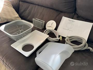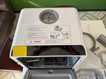 Vendo lavastoviglie da banco per acquisto di altra tipologia. Ideale per camper, roulotte, ufficio, piccole cucine, casa vacanze. Per 4/6 coperti. La lavastoviglie ha 5 programmi di lavaggio: - standard, 70’ - rapido 30’, - ECO, 60’ - forte, 90’ - lavaggio frutta e verdura, 20’ Inoltre ha la funzione Dry per asciugare le stoviglie a fine lavaggio. Con 2 bracci irroratori rotanti ad alta pressione dell'acqua inferiore e superiore. Questa lavastoviglie da banco supporta 2 modalità di alimentazione dell'acqua. Una volta riempito, il serbatoio dell'acqua integrato da 5 litri consente l'uso immediato. Nella modalità rubinetto, è facile da usare semplicemente collegando i tubi di ingresso e scarico dell'acqua alla macchina e al rubinetto. In modalità serbatoio, utilizzare l'imbuto per aggiungere acqua per un controllo preciso del flusso d'acqua e per evitare traboccamenti. Lo scarico può essere collegato ad uno scarico a muro o direttamente posizionato all’interno del lavello della cucina. Facile da riporre se non la di usa per lunghi periodi. - Livello di rumore 60dB. - Comandi touch. - Display a LED Accessori in dotazione: - Tubo di carico, - Tubo flessibile di scarico, - Cestino per frutta, - Brocca d'acqua da 1.8L, - lmbuto, - Manuale di istruzioni in italiano.