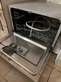 Lavastoviglie Indesit AAA usata pochissimo, dimensioni ridotte, altezza 44 cm profonda 51 cm larga 55 cm circa perfetta per incasso sopra o sotto forno o microonde, in cucine design. Vendo per inutilizzo cambiato cucina