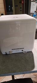 Vendo Mini Lavastoviglie Aquatica – Lavastoviglie da Tavolo Compatta, 2 Coperti, 3 Programmi, Serbatoio 5L, Senza Installazione, Silenziosa 58dB, Portatile per Casa & Campeggio Dati tecnici: • tipologia: freestanding • potenza assorbita: da 730 a 860 Watt • consumo energetico annuale: 125 kWh • consumo d'acqua annuale: 1400 litri • classe energetica G • programma predefinito: ECO • durata del programma predefinito: 155 minuti • emissione sonora: 58 dB • piedini d'appoggio regolabili in altezza • alimentazione: 220-240 V~ | 50 Hz Consegna: • 1 x lavastoviglie • 1 x portaposate • 1 x tubo flessibile di mandata • 1 x tubo di scarico • 1 x imbuto Dimensioni: • Dimensioni: ca. 42 x 43 x 45 cm (LxAxP) • Profondità con porta aperta: 75 cm • Lunghezza tubo flessibile di mandata: ca. 1,50 m • Lunghezza tubo di scarico: ca. 1,50 m • Lunghezza cavo d'alimentazione: ca. 140 cm • Peso: ca. 12 kg Usata una decina di volte spedizione in tutta Italia Prezzo 110€ leggermente trattabile