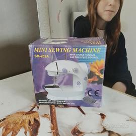 Mini macchina da cucire Modello: SM-202A Nuova con scatola, portatile con doppio filo e due controlli di velocità che rendono facile creare cuciture belle di alta qualità portatile.