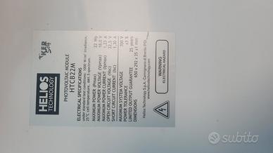 mini modulo fotovoltaico dotato di connettori e regolatore di carica per alimentare lampadine o piccolo carichi. dati tecnici in fotografia
