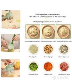 Set di tagliaverdure elettrico portatile 4 in 1, tritaverdure con spazzola per la pulizia, affettatrice, mini robot da cucina. Ricaricabile usb
