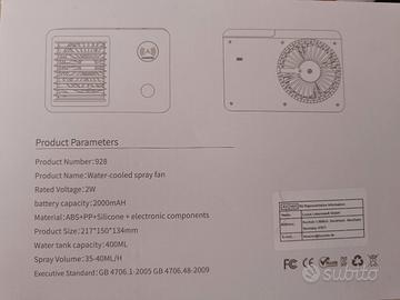 Mini Ventilatore Spray Raffreddato ad Acqua con Umidificatore - Portatile, Silenzioso, Ricaricabile