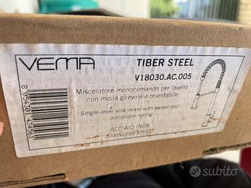 Miscelatore lavandino VEMA TIBER STEEL In acciaio inox satinato Miscelatore monocomado per lavello con molla girevole e orientabile Vendo nuovo come da foto Scatola rovinata