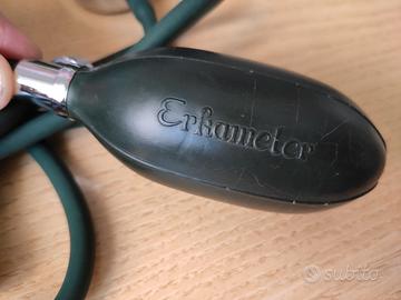 Vendo questo misuratore di pressione manuale (Sfigmomanometro) della Erka Simplex versione vintage del 1980, da decenni marca di riferimento in quanto a precisione e durevolezza.