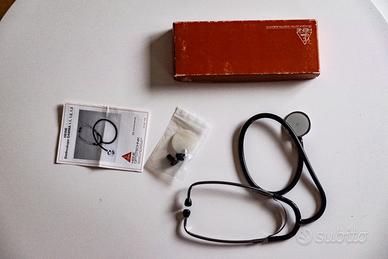 Misuratore di pressione ERKA con stetoscopio, fornito di parti di ricambio. La custodia che contiene il misuratore è in metallo e senza nessun graffio, così come per lo stetoscopio. Gli oggetti sono praticamente nuovi forniti con imballi originali ed istruzioni: è stato un errato acquisto e sono stati utilizzati per prova e basta.