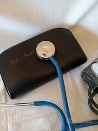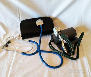 Sfigmomanometro Aneroid ERKA, originale e autentico, tradizionale a due vie con valvola di rilascio a vite per una sensibile regolazione, quadrante cromatro da mm. 48, fascia con chiusura a velcro, completo di borsa custodia e di Fonendoscopio originale ERKA. Ambedue gli articoli, come da foto sono in condizioni perfette, usarti solo famigliarmente pochissime volte.