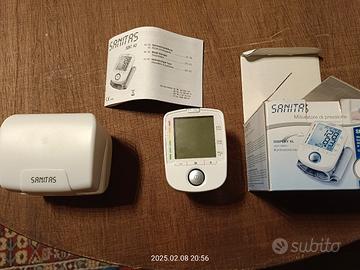 misuratore di pressione da polso marca SANITAS modello SBC 42. misurazione automatica della pressione e del battito cardiaco al polso. classificazione OMS. Pressione media mattutina e serale. display XL con retro-illuminazione blu.