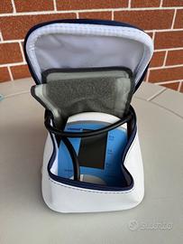 Trattasi di un misuratore di pressione sanguigna modello Visomat - Comfort eco - Marca UEBE made in Germany, regolarmente funzionante. Necessita di 4 batterie 1,5 V tipo AA oppure con alimentazione esterna attraverso presa per alimentatore posta sul retro (l'alimentatore non fa parte della confezione). Il prodotto è fornito di scatola di imballo originale, custodia con zip, libretto di istruzioni multilingue (anche in italiano) e scheda su cartoncino per trascrivere i valori misurati. Ha una memoria interna per 30 misure. Sulla custodia è presente un segno fatto da una biro blu per distrazione. La misurazione della pressione avviene in modo automatico.