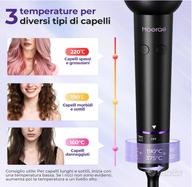 Perfetto per capelli lunghi, ma adatto a diverse tipologie grazie alla regolazione della temperatura.