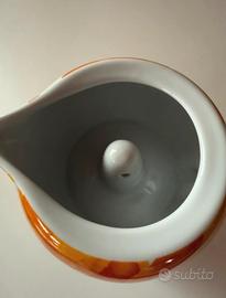 Moka Thun "Al Volo" in Ceramica e Acciaio - Nuova con Scatola Vendo bellissima caffettiera Moka firmata Thun, linea "Al Volo". Il pezzo è caratterizzato dal tipico decoro con cuori colorati su fondo giallo/arancio, perfetto per dare un tocco di allegria alla cucina o per un regalo speciale. Caldaia in acciaio, raccoglitore superiore in pregiata ceramica decorata, coperchio coordinato. Include la sua scatola originale integra e i relativi inserti/foglietti illustrativi (come da foto).