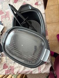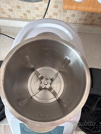 Vendo robo da cucina, perfettamente funzionante con connesione a internet Varoma, cestello per il vapore, plancia per spostarlo con facilita’ e acessori comprati aperte spatola e salva goccia per il boccale per versare meglio il contenuto del boccale, più copertura anti polvere con tasche per riporre gli accessori e ricettario con istruzioni.