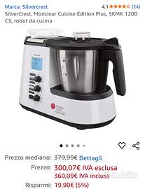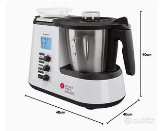 Robot da cucina simil Bimbi. Mai utilizzato. Senza scatola. Tutti i pezzi della foto disponibili + 7 ricettari. FUNZIONALITÀ ROBOT: 10 funzioni di cottura. Per cucinare, friggere, cuocere a vapore, mixare e impastare. Tritatutto/tritaghiaccio, purea, emulsione, rotazione a destra/sinistra, pesatura. In vendita su amazon a 360 euro.