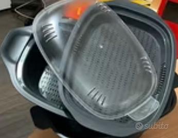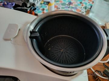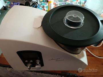 Vendo robot da cucina multifunzione Monsieur Cuisine (SilverCrest) modello SKMH 1100 A1, perfettamente funzionante. Ideale per: cuocere, frullare, impastare, sminuzzare e cuocere a vapore. Caratteristiche principali: • Funzioni: Cottura (fino a 120°C), cottura a vapore, sminuzzamento, impasto, miscelazione ed emulsione. • Boccale in acciaio inox da 2 litri. • Cestello per cottura a vapore interno. • Set per cottura a vapore "Varoma" (grande e piatto con coperchio). • Farfalla (per montare panna/albumi). • Manuale d'istruzioni originale. • Condizioni: Usato ma in ottime condizioni estetiche e meccaniche. Componenti lavabili in lavastoviglie. Un’ottima alternativa al Bimby ad un prezzo moderato! Monsieur Cuisine Silvercrest, modello SKMH 1100 A1, alternativa Bimby, robot da cucina Lidl, multicooker, robot che cuoce, impastatrice multifunzione, cucina a vapore, robot cucina completo di accessori.