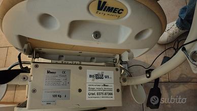 Montascale Vimec a poltroncina mai utilizzato Prezzo: € 1.600 trattabili Descrizione: Vendo montascale a poltroncina marca Vimec, ideale per anziani o persone con difficoltà motorie. Il montascale è pari al nuovo, mai utilizzato, installato ma di fatto inutilizzato. Smontato da abitazione privata. Caratteristiche principali: Marca: Vimec Tipologia: montascale a poltroncina Portata: 120 kg Completo di guida/binario (come da foto) Seduta comoda con braccioli Alimentazione elettrica Il prodotto è funzionante e in ottime condizioni estetiche. Prezzo trattabile. Ritiro a carico dell'acquirente