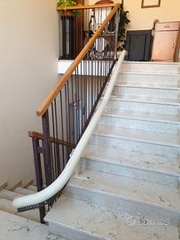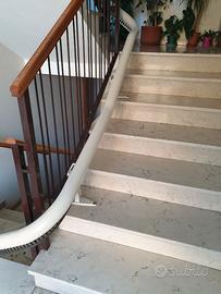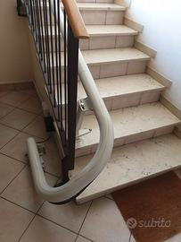 "Vendo Montascale per mancato utilizzo, da smontare ed utilizzare eventualmente riadattato se non adatto alla vostra situazione. Il montascale è montato su 4 rampe di scale (vedere 4 foto), le prime 2 rampe sono di 6 + 6 scalini e le ultime 2 sono di 8 + 8 scalini. Vendo completo di manuale d’uso, 1 chiavetta di sicurezza comando poltroncina (+ 1 di riserva) e 2 telecomandi, di inizio e di fine corsa applicati a muro ed 1 di fermata di mezzo (al momento non utilizzato). Quando la poltroncina è parcheggiata ad inizio o fine corsa, la batteria si ricarica automaticamente. Se veramente interessati contattatemi, dispongo di ulteriori foto e video. Il prezzo è sicuramente molto vantaggioso con un notevole risparmio rispetto al nuovo. Il tutto è visionabile, previo appuntamento in zona Bassano frazione S. Giuseppe di Cassola (VI)"