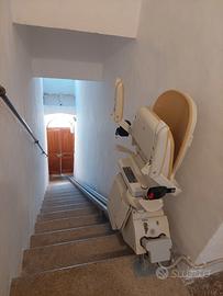 Montascale per scala dritta fino a 7,10 metri come da foto. Sedia girevole e binario con stazione di ricarica sia in alto che in basso, telecomando e comandi dai braccioli...vendo per inutilizzo. Usato pochissimo. Smontaggio e trasporto a carico dell'acquirente. Ascolto proposte.