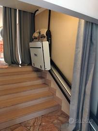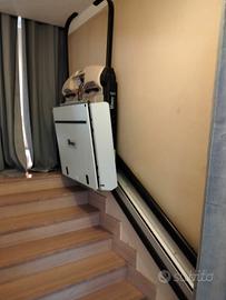 Montascale Vimec con piattaforma Sedia a rotelle.Perfettamente funzionante. Smontaggio e trasporto a cura acquirente . È stato usato veramente poco più di un mese. Adatta per scala (misurata da spigolo primo gradino all' ultimo) di 1,60 MT.