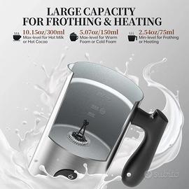 Morpilot Montalate Elettrico, Cappuccinatore MMF-031M, Milk Frother per Cappucci 4 IN 1 FUNZIONE - Un pulsante con quattro funzioni, shiuma calda, latte caldo, cioccolata calda, schiuma fredda CAPACITÀ - Riscaldare il latte: MAX 300ML, Fare schiuma: MAX 150ML. La capacità soddisfa le esigenze di condivisione con la famiglia e gli amichi. I contrassegni graduati sulla parete interna ti consentono di controllare meglio la quantità di latte utilizzata ACCIAIO INOSSIDABILE - Il montalatte è realizzato in acciaio inossidabile, Non solo ha un design raffinato, ma è anche più solido e durevole FORZA & SILENZIOSO - Quando schiumatore latte elettrico usi ogni giorno, non ti farà rumore e schiuma in modo rapido ed efficient CONTENUTO DELLA CONFEZIONE - 1 x Montalatte, 1 x Frullino, 1 x Base, 1 x Spazzola Pulizia, 1x Raschietto in silicone
