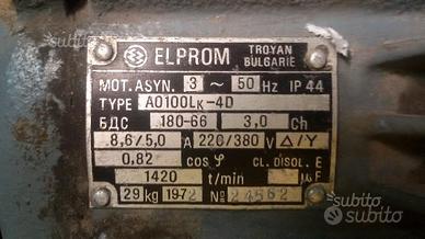 Motore elettrico 2,2 kw 3 hp/cv 1400 giri trifase