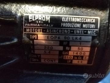 motore elettrico 220 volt elprom asincrono con puleggia 1cv 1400 giri ottimo stato €80.solo contatto telefonico3923482236.no messaggi