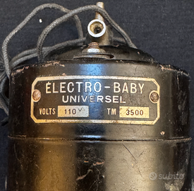 Motore elettrico vintage Électro‑Baby Universel a 110 Volt, probabilmente appartenente a un piccolo elettrodomestico o massaggiatore elettrico della prima metà del Novecento (circa anni 1920‑1940)