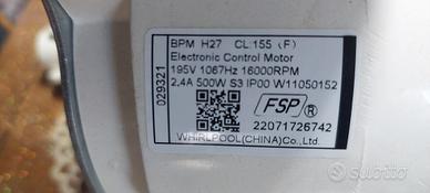 vendo come da foto motore perfettamente funzionante (qualsiasi prova)per lavatrice whirlpool mod. lavatrice FFB846SVIT