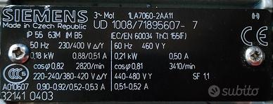 motore trifase SIEMENS 1LA7060-2AA11 0,18kW