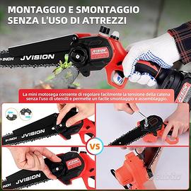 🔋【Durata Della Batteria Potenziata】La tecnologia del motore brushless della mini motosega elettrica JVISION ottimizza l'uso della batteria, e con due batterie da 4000mAh ciascuna, offre una durata complessiva prolungata, consentendo un utilizzo più lungo tra una ricarica e l'altra.