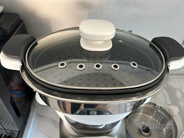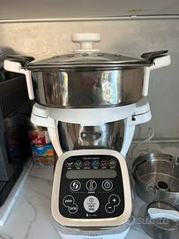 Cucina perfettamente tutti i tipi di ricette e si può scaricare anche l’app, funziona come un bimby, completo di tutti gli accessori compreso la vaporiera composta da due piani e coperchio, tutto in ottime condizioni, usato pochissimo e vendo per inutilizzo. Praticamente nuova e in perfette condizioni, per qualità info contattatemi