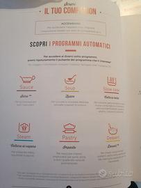 Robot automatico completo di libro di ricette/istruzioni e accessori per tagliare, impastare, frullatore, cestello a vapore, sbattitore uova e miscelatore.