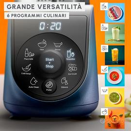 ASSOLUTAMENTE VERSATILE IN SOLI 2 CLIC: 8 programmi automatici assicurano velocità e tempo di miscelazione ottimali, per consistenze adatte per ogni tipo di smoothie, bevande vegetali, salse, intingoli e molto altro