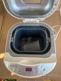 Vendo macchina per pane Moulinex Home Bread modello B08, usata ma in buone condizioni. Include ciotola e paletta impastatrice.