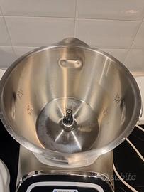Robot multifunzione da cucina, trita, impasta, per preparare zuppe e cottura al vapore. È possibile connetterlo via bluetooth alla sua app dedicata per scaricare tante ricette. Dotato di cestello per cottura al vapore e lame e spatole come da foto. Usato pochissimo e perfettamente funzionante.