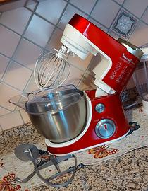 planetaria come nuova completa di accessori .. frusta x montare la panna , quella x impastare , boccale per frullati e parte per grattugiare fine e spesso e affettare .