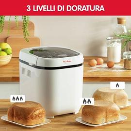 AUTOMATICA: Versa gli ingredienti nel secchiello per il pane, seleziona il programma e la macchina per il pane Moulinex lavorerà per te, dalla fase d'impasto a quella di cottura; controlla i parametri e i tempi grazie all'ampio pannello con schermo LCD