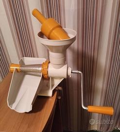 Vintage anni '70, set completo, perfettamente funzionante, con motore elettrico e manovella, Moulinex Spremidoro Combinè Jeannette, storico elettrodomestico da cucina, passapomodoro, tritacarne, grattugia, affetta. Integro, con pochi segni del tempo, come foto.