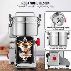 • Venditori Affidabili di Esperienza • Spediamo ovunque, anche in Contrassegno • Vendiamo solo articoli Nuovi di prima qualità • Contattaci per qualsiasi info necessaria Macinacaffè oscillante: il tipo oscillante è più comodo del tipo verticale. Puoi oscillare il corpo del macinacaffè commerciale di 270° per aiutarti a versare invece di sollevare il macinacaffè. Inoltre, puoi oscillare il macinacaffè durante il lavoro, producendo polveri più uniformi e fini. Funzione Super Smash: Potenza motore: 3000 W; Velocità motore: 28000 (r/min); Capacità: 1000 g; Tempo di funzionamento: 5 minuti; Tempo di intervallo: 10 minuti; Livello di frantumazione: mulino superfine; Principio: macina ad alta velocità. Fitness: 30-300 mesh. Materiale in acciaio inossidabile e design sicuri: il piccolo macina spezie elettrico è realizzato in acciaio inossidabile per uso alimentare, caratterizzato da durevolezza e nessun inquinamento da lavorazione. La struttura della fibbia presenta una buona tenuta. Macinacaffè a secco multiuso: la macchina per la polvere può lavorare vari materiali secchi, tra cui ① cereali (soia, mais, orzo, grano, avena, segale, piselli, chicchi di caffè), ② spezie (finocchio, pepe, cannella, rosmarino), (non adatto per materiali umidi, freschi, oleosi o appiccicosi). Suggerimenti per l'uso: 1. Questa macchina macinacaffè commerciale può essere accesa solo dopo aver chiuso completamente il coperchio. 2. I materiali pronti per la macinatura devono essere sufficientemente asciutti.