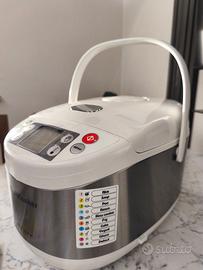 Multicooker è un prodotto firmato Ariete che racchiude in un unico elettrodomestico tanti strumenti di cottura: padella elettrica, friggitrice, vaporiera, yogurtiera, forno. Multicooker è il perfetto alleato in cucina ed offre molteplici vantaggi: effetto risparmio, ritorno alla cucina salutare, limita gli ingombri in cucina ed è salva-tempo. Ha una capacità di ben 5 litri, corpo in acciaio inox e recipiente con rivestimento in ceramica antiaderente, tecnologia di cottura 3D per una distribuzione omogenea del calore, range di temperatura da 30° a 185°, può essere programmato fino a 24 ore di anticipo, display LCD semplice ed intuitivo con funzioni di cottura pre-impostate e personalizzabili ed è maneggevole e facile da trasportare.