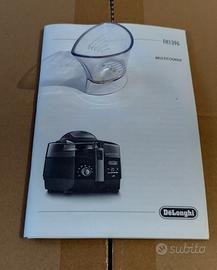 Il multicooker De'Longhi FH 1396 si distingue per la sua tecnologia Surround Heating System (SHS) e un'ampia capacità, adatta per famiglie numerose (fino a 8 persone). Tecnologia di Cottura: Utilizza il sistema SHS, composto da una resistenza superiore (1400 W) con ventola e una resistenza inferiore (1000 W) che lavorano insieme per avvolgere il cibo in modo uniforme, rendendolo croccante fuori e morbido dentro.