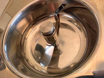 Macchina per gelato Musso Stella – una delle gelatiere domestiche più affidabili e performanti sul mercato. Usata, in ottime condizioni. Il coperchio in plastica trasparente presenta segni di invecchiamento, ma ciò non influisce sulle prestazioni.