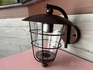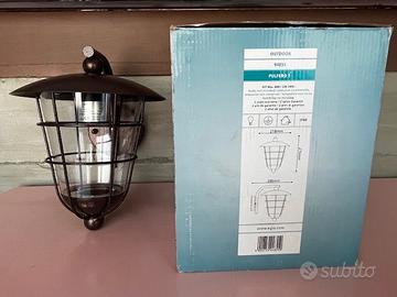 Lampada applique in metallo, da esterno, a goccia, con gabbietta di protezione, nuova mai usata. Lampada proveniente da un fondo di magazzino. Prezzo 18 € cadauna.