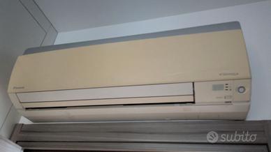 Vendo unità interne (split a parete) Daikin modello FTKS20DVML, capacità 2.0 kW (circa 7000 BTU), tecnologia Inverter. Ne ho 3 a disposizione. Le macchine sono state appena smontate da un tecnico professionista (i tubi non sono stati tagliati male, ma scollegati correttamente). A livello meccanico ed elettronico sono perfettamente funzionanti: schede madri, motorini deflettori e ventole tangenziali girano senza problemi. Come si vede in foto, le plastiche presentano il classico ingiallimento dovuto al tempo (fisiologico per i modelli di quegli anni), che è un difetto puramente estetico e non ne compromette l'uso. Sono ideali da montare in garage, laboratori o magazzini, oppure eccezionali come "banca organi" per recuperare pezzi di ricambio originali Daikin ormai introvabili a buon mercato. Prezzi: Singolo split: 35€ Blocco di tutti e 3 gli split: 90€ (affare) (ATTENZIONE: I telecomandi originali e il motore esterno trial sono venduti separatamente in altri miei annunci. Qui si vendono solo le unità interne come da foto). Per il singolo pezzo posso spedire in tutta Italia con TuttoSubito. Per il blocco intero prediligo il ritiro a mano in zona Palermo. Contattatemi per qualsiasi informazione.
