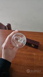 Oggetto decorativo di nave in bottiglia color oro, in bottiglia di vetro.