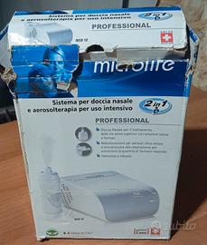 Nebulizzatore Microlife Aerosol NEB 10. L'apparecchio è usato ma perfettamente funzionante. Dispone, come da foto, del tubicino di gomma per fornire l'aria al nebulizzatore. LA SCALA CONTIENE SOLO IL TUBO IN GOMMA 2 MASCHERINE E IL CAVO DI ALIMENTAZIONE.