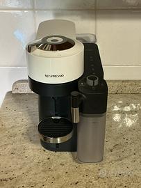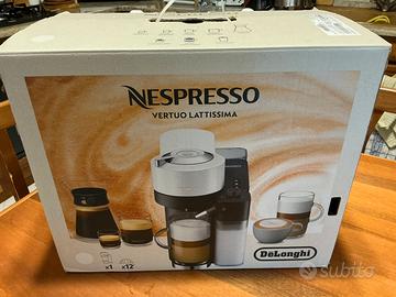 Vendo Nespresso Vertuo Lattissima ENV300. Bianca, perfettamente funzionante ed in ottime condizioni, può considerarsi come nuova, in quanto rigenerata e decalcificata da recentissimo presso centro assistenza ufficiale. Acquistata a Giugno del 2024 é ancora in garanzia ufficiale italiana fino a Giugno 2026. La Nespresso Vertuo Lettissima é una macchina di qualità che consente di preparare in un attimo diversi tipi di caffè dal classico espresso intenso (qualitá come al bar), a caffè lunghi, mug, aromatizzati, o al Cappuccino, Latte Macchiato, oppure al caffe con aggiunta di Schiuma di Latte Calda. La MACCHINA é COMPATIBILE SOLO CON CAPSULE NESPRESSO VERTUO acquistabili nei negozi Nespresso o direttamente online sul sito Nespresso La Macchina nuova costa 400 euro. La vendo 220 euro. Completa di tutto e di scatola. Consegna di presenza o tramite spedizione tramite Tuttosubito. Tel 3284590007
