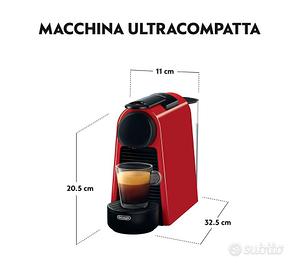 Attenzione: regalo anche portacapsule in bambu con cassettino se acquistata con ritiro a mano. Ancora con confezione originale. macchina caffè Nespresso Essenza Mini Delonghi Red Modalità di funzionamento Completamente automatica; 2 ricette programmabili, sistema di riscaldamento Thermoblock, Energy Saving: dopo 3 minuti dall’ultimo utilizzo entra in modalità Eco, mentre dopo 9 minuti si spegne; Serbatoio dell’acqua removibile da 0.6 L. 2 lunghezze in tazza programmabili in base alla quantità di caffè che preferisci: Espresso e Lungo Ottime condizioni - Perfettamente funzionante. Vendo per passaggio a nuova macchina. Ritiro a mano gratuito. Disponibile spedizione. Prezzo leggermente trattabile