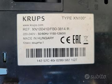Nespresso Krups Inissia XN 100 - Macchina per Caffè - colore crema Perfettamente funzionante già pronta per l'uso Compatibile con le capsule Nespresso® e quelle compatibili, offre due formati (Espresso e Lungo). Con funzione di stop automatico Accensione velocissima in soli 25 secondi 0,7 litri di serbatoio - 19 bar di pressione Questa macchina ha un piccolo DIFETTO: quando eroga il caffè perde alcune gocce di acqua nella parte sottostante. Probabilmente dipende da una guarnizione che andrebbe sostituita ma il caffè è perfetto.