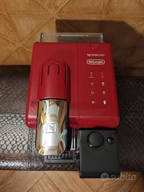 Macchina da caffè Nespresso LATTISSIMA TOUCH De Longhi - Mod. EN550.R – colore Rosso. In Perfette condizioni, PRATICAMENTE NUOVA in tutto - SENZA ALCUN SEGNO o GRAFFI - Usata pochissime volte!! Comunque, per una maggior garanzia di perfetto funzionamento futuro, è stata accuratamente smontata e ripulita; quindi è stata igienizzata ed è stato fatto il trattamento di decalcificazione, in special modo della delicata parte della sede della capsula e del beccuccio. Infine è stata testata a dovere in ogni sua funzionalità. Praticamente questa macchina è NUOVA, senza alcuno problema di malfunzionamento, come uscita dalla fabbrica. Questa meravigliosa macchina funziona anche con capsule compatibili Nespresso, ed in più, oltre a fare dei fantastici e cremosi espressi, è speciale per fare, con grande rapidità degli ottimi cappuccini o latte macchiato con una schiuma molto densa, in completa autonomia PREMENDO un solo tasto. Completa dunque di Cappuccinatore per montare il latte e di manuale per istruzioni. PRODOTTO NUOVO E GARANTITO NEL TEMPO Per dimostrare la certezza di un prodotto garantito, sono disponibile al suo reso, entro 10 giorni, in caso di constatazione di malfunzionamento (….ma ritengo ciò improbabile!!) P.S.: Inoltre, darò consigli post vendita, di manutenzione specifica, per una qualità di caffè sempre al TOP e per una grande longevità della stessa macchina.